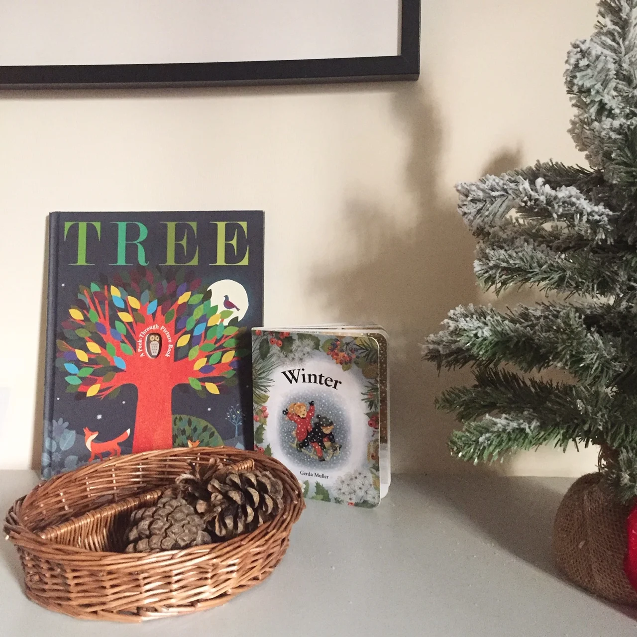 A child-accessible shelf had to be child-friendly, so the bottom shelf has become Eilish’s. The celebration ring, which we change seasonally, now lives here and little hands explore when they wish. A small basket of art cards and poetry books sit here that we explore most mornings, along with a basket of seasonal books.